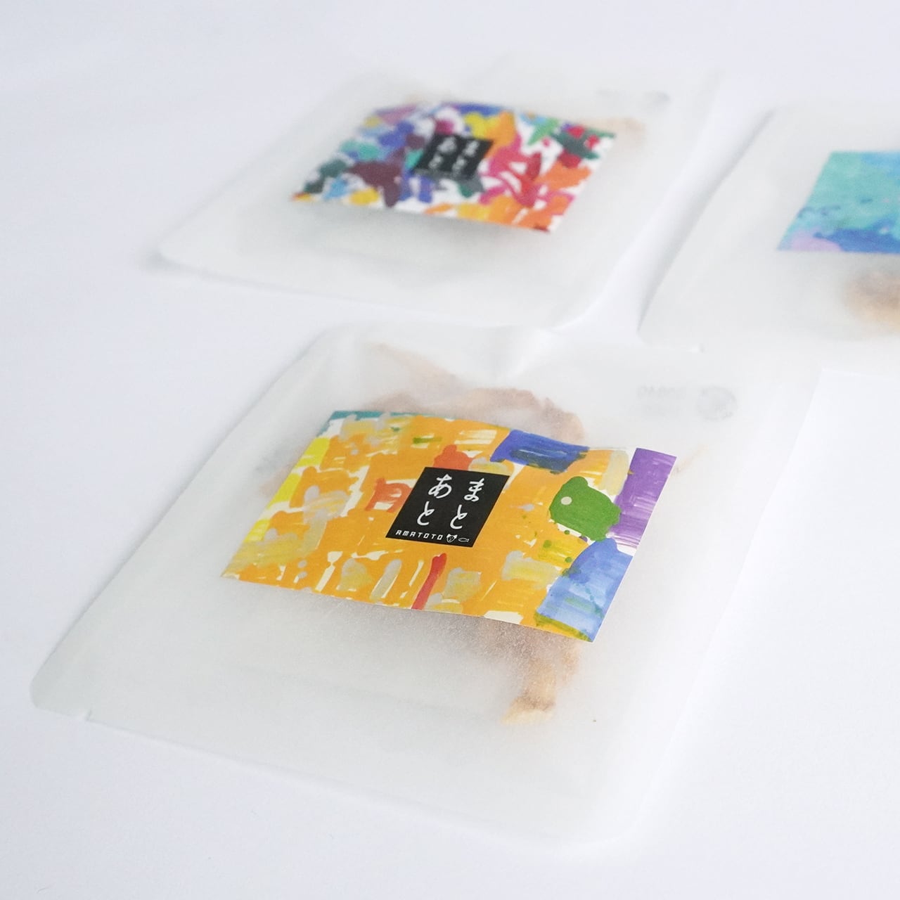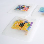 パッケージはダウンズプロジェクトのダウン症の作家さんの作品3枚をランダムに使用しています。作家さん達の癒しのアートワークで愛犬と楽しいひと時をお過ごしください